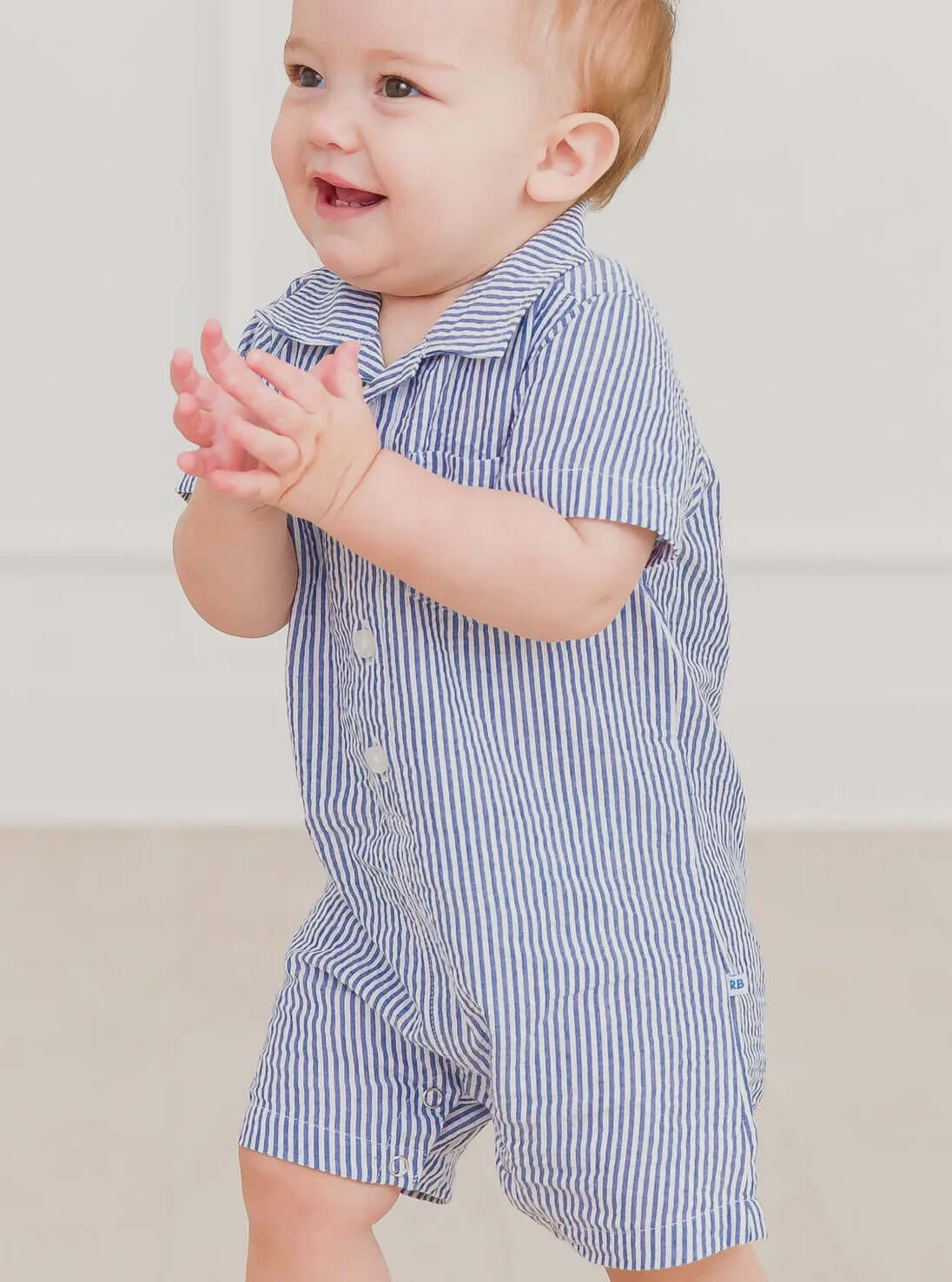 This blue and white striped romper is perfect for your little ones. Made from cotton, it's comfortable and cute for toddlers and infants. Never worry about finding a matching set again and let your child have fun in style. Get yours today in a variety of sizes!