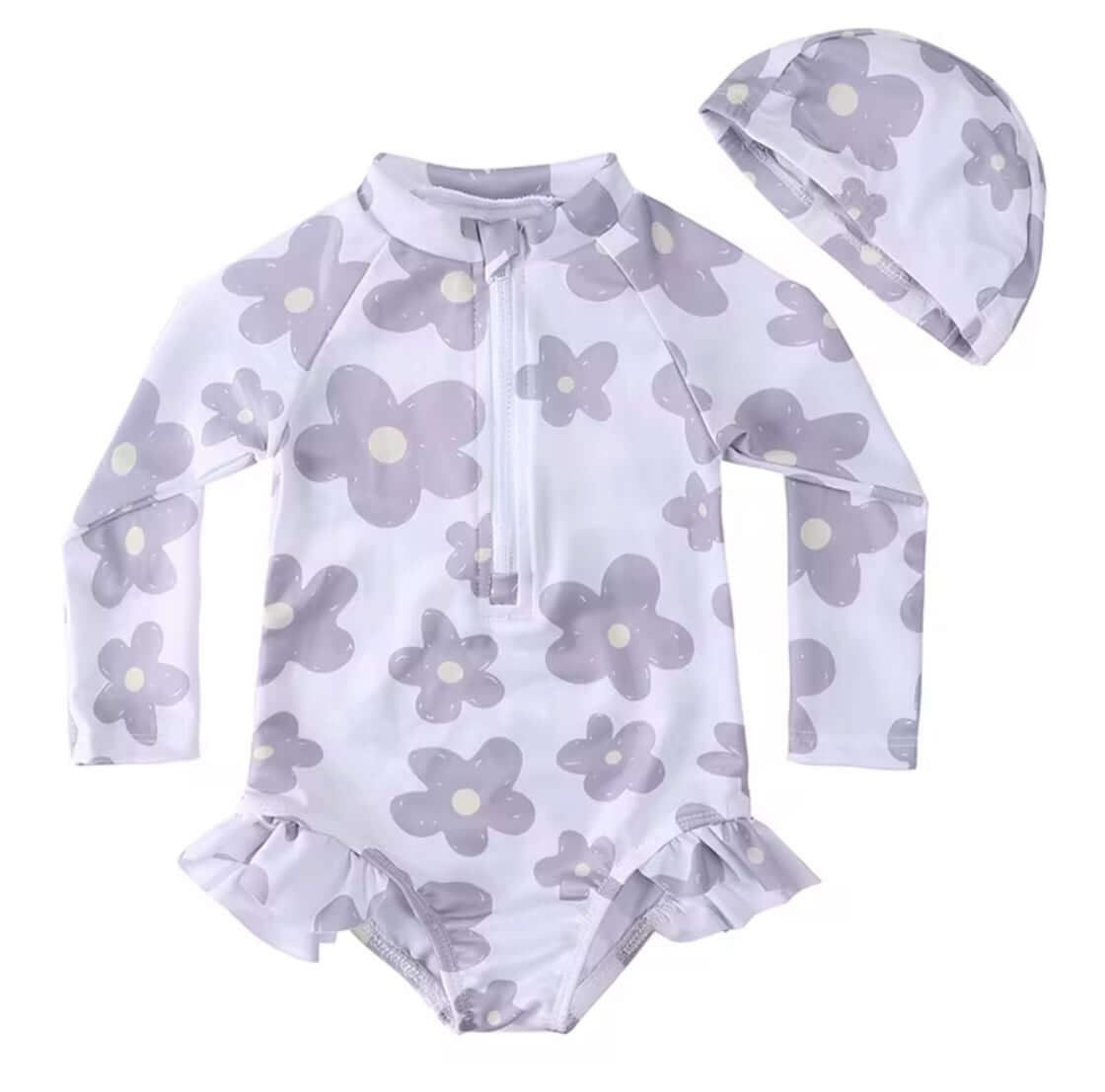 Stay safe from the sun's harmful rays with our Swimsuit Green. This long sleeve rash guard and protective hat keep infants and toddlers protected without the need for sunscreen. Perfect for fun in the sun and water play, enjoy worry-free outdoor activities with this swimsuit.
