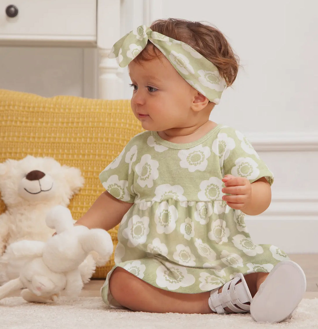 Dress up your little one (pun intended) in this vintage green dress. With its soft and cozy fabric, your toddler or infant will be comfortable all day long. This cute and fun dress is a must-have for any little fashionista!